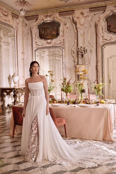 The Justin Alexander Spring/Summer 2026 is a study in sophisticated bridal design, blending clean, modern lines with exquisite detailing. Flattering ruching and structured corsets sculpt the silhouette, while timeless demure necklines and contemporary cuts offer a new take on classic elegance. Statement bows, voluminous ruffles, and eye-catching trains create unforgettable moments, while tonal beading, glamorous sparkle, and pearl accents add a luminous touch. Rich brocade and jacquard fabrications bring depth and texture, complementing sleek, simple silhouettes with decadent back detailing. This collection is designed for the confident bride who embodies both grace and boldness.